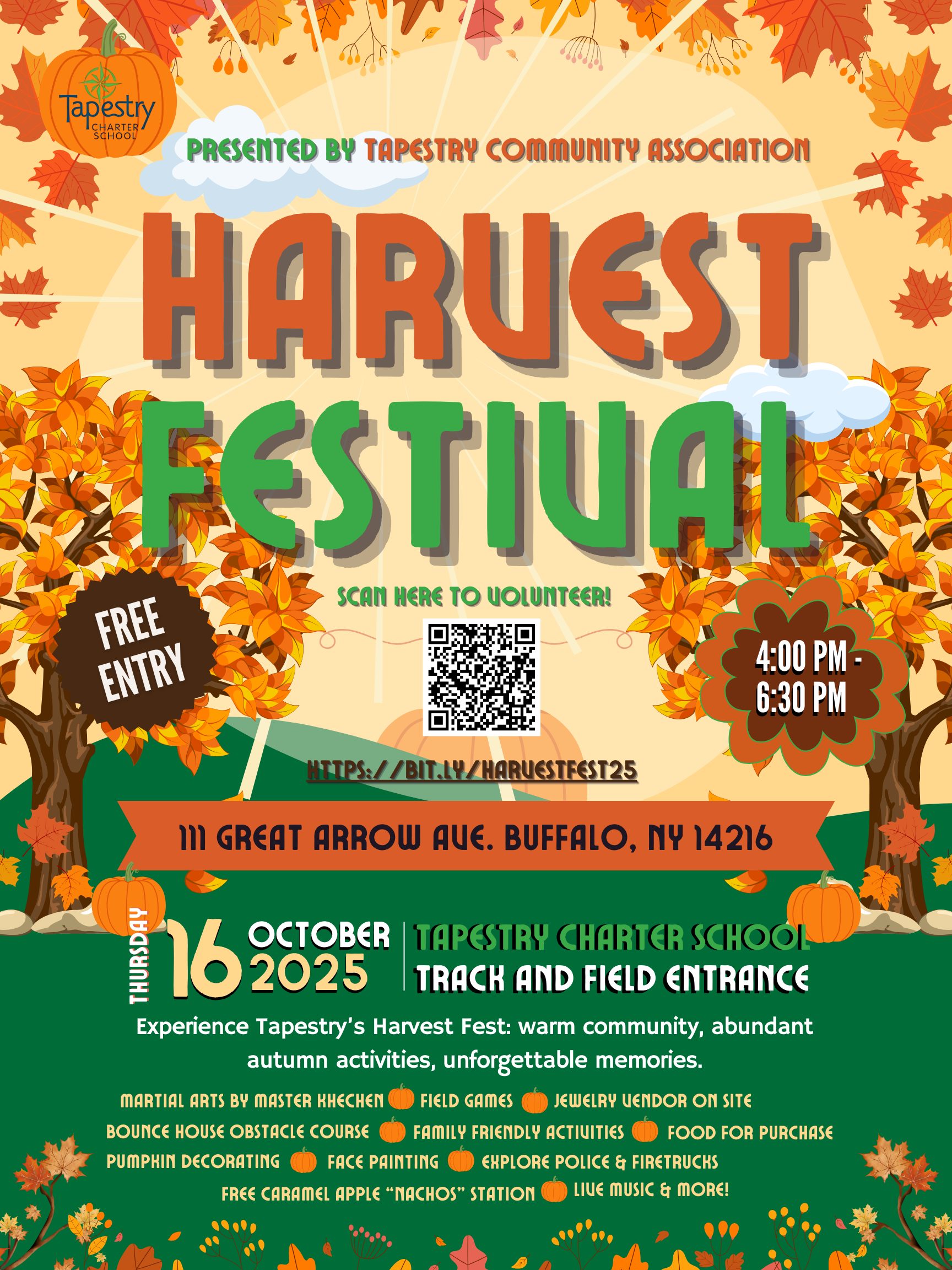 The Tapestry Community Association (TCA) hosts a variety of special events throughout the school year to bring families, students, and staff together while raising funds to support community programs. Signature events include HarvestFest in the fall, WinterFest, along with family-friendly fundraisers such as Trunk or Treat, the Meat Raffle, and the Mum Sale. These gatherings combine fun activities—like games, food stations, performances, and student showcases—with opportunities for parents and caregivers to engage with the school community. Each event is designed to celebrate Tapestry’s culture, strengthen connections, and invest directly back into student and family experiences.